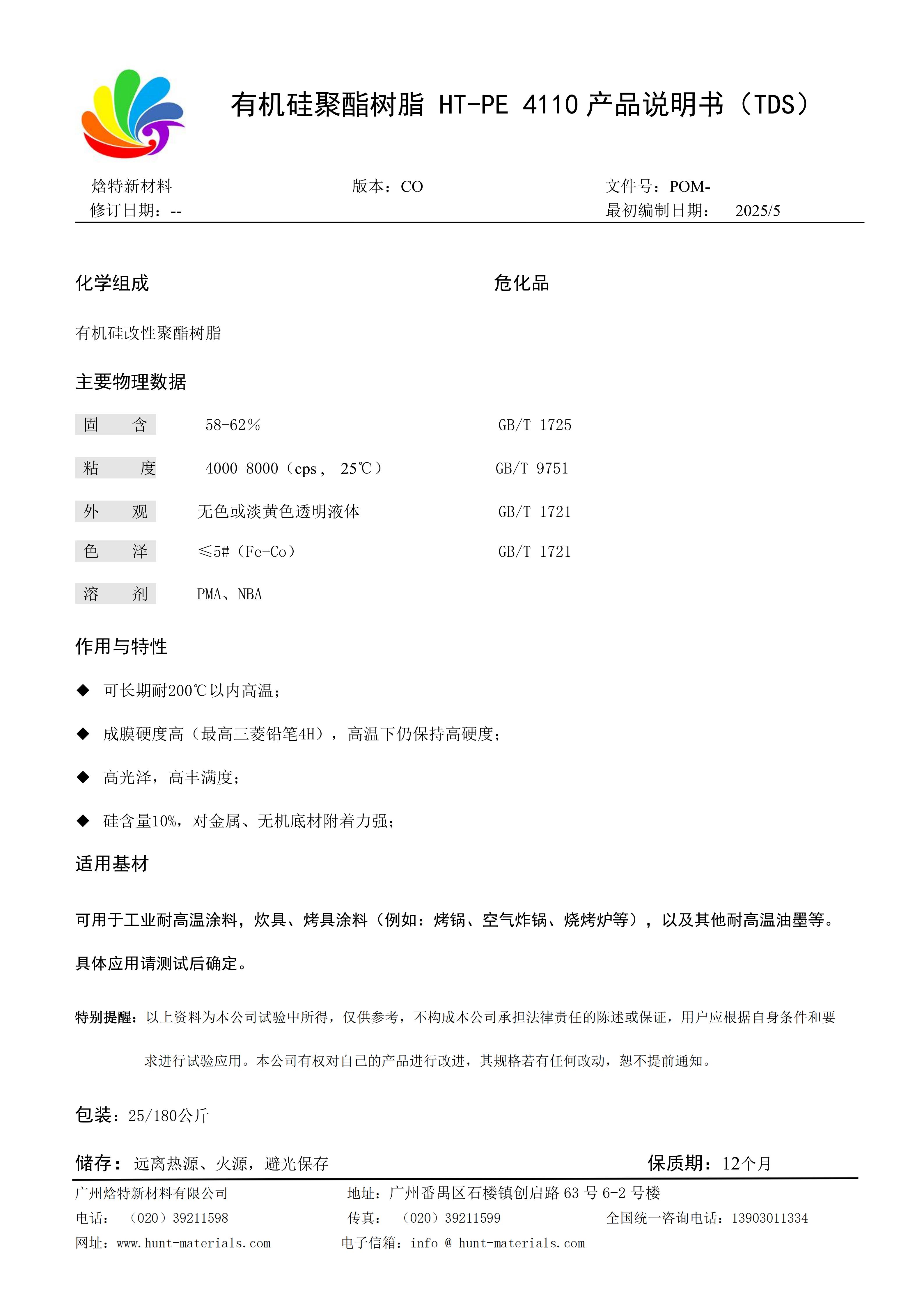 HT-PE 4110 有机硅聚酯树脂